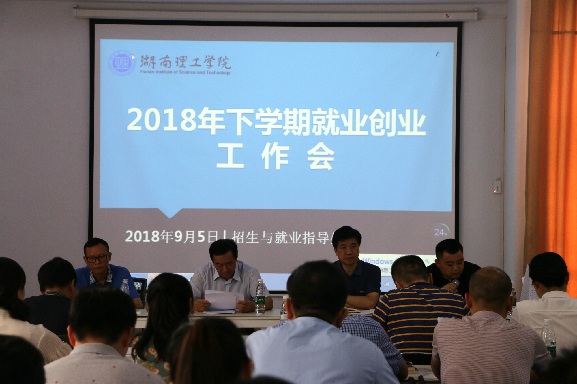 校园网讯 9月5日下午,我校2018年下半年就业创业工作会在综合楼三楼就业指导中心召开。副校长钟华出席,招就处负责同志及相关教师、各学院及及南湖学院分管领导和就业专干。会议由招就处处长喻运斌主持。