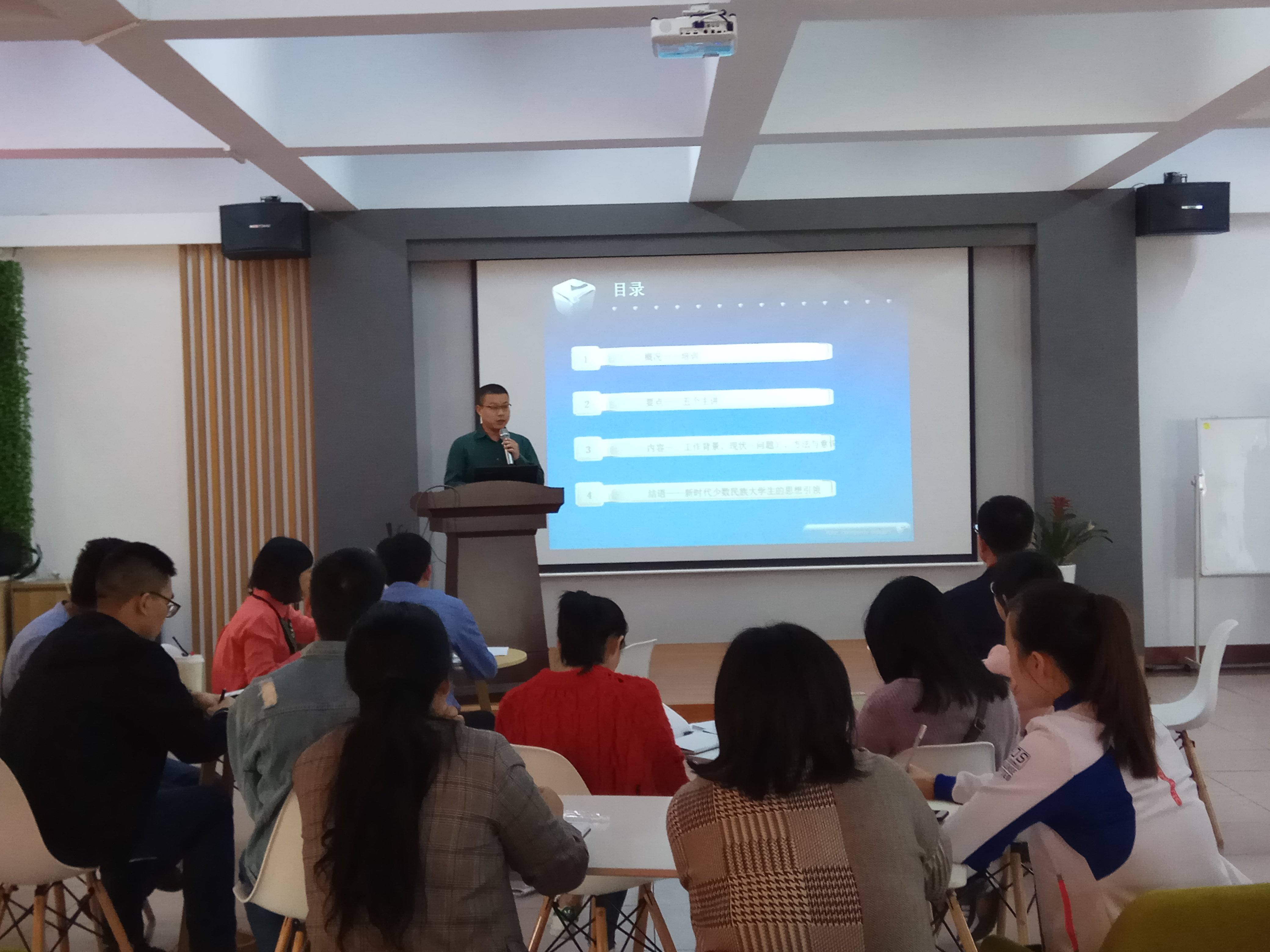 校园网讯 10月11日,我校第十二期辅导员成长沙龙活动在综合楼四楼创新创业服务大厅举行,本期活动的主题是少数民族学生教育管理。