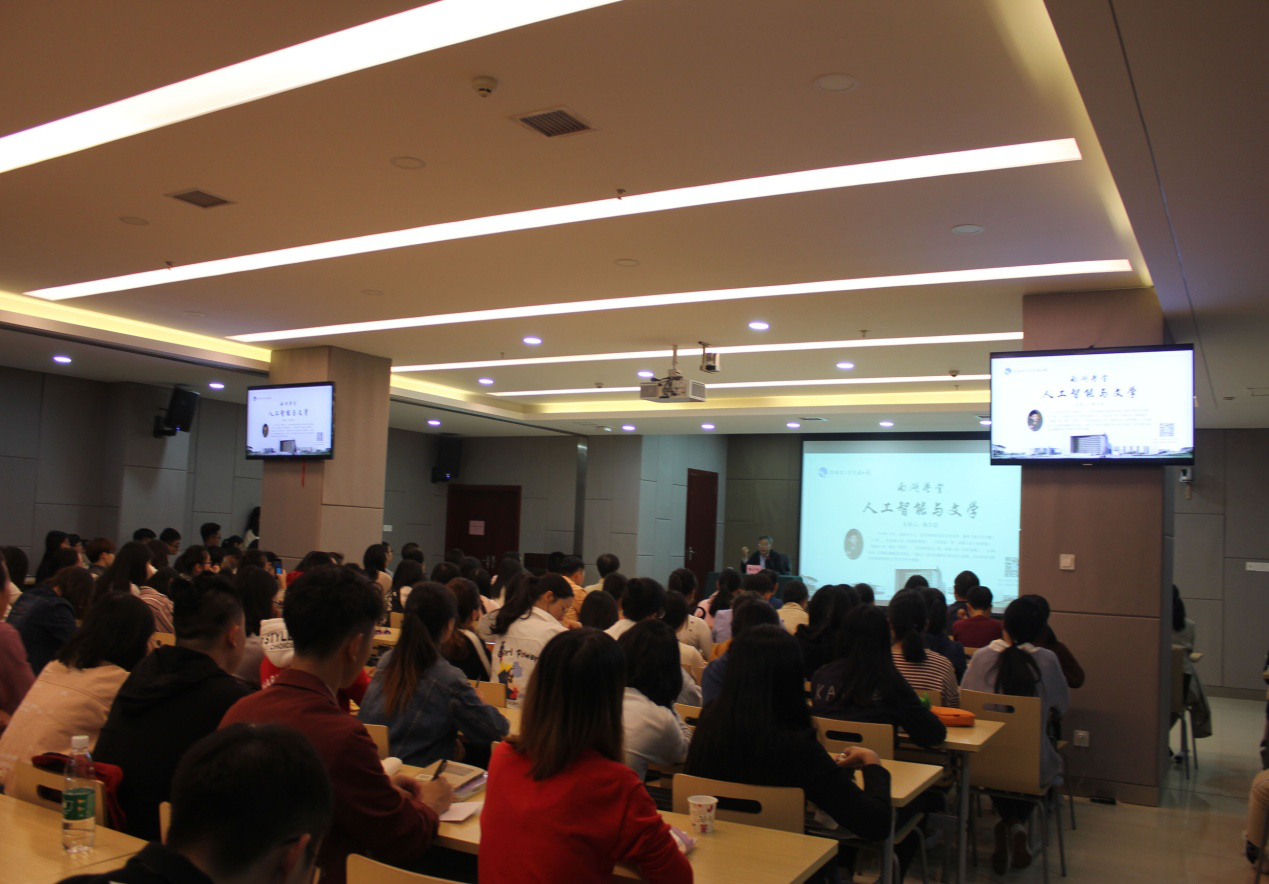 韩少功教授引经据典,漫谈古今中外,从“当今时代人工智能的发展趋势”,“机器人的文学”,“技术并不是万能的”等方面对人工智能与文学的关系进行阐释,前沿的观点和新潮的谈吐让现场观众如沐春风。