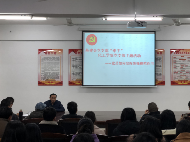 校园网讯 12月28日晚,基建处党支部“牵手”化工学院党支部共同开展了主题为“党员如何发挥先锋模范作用”主题党日活动暨新党员宣誓大会,学校基建处相关负责人,化工学院相关负责人以及双方的党员同志参加本次活动。