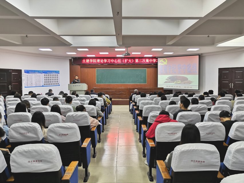 校园网讯 4月2日下午,土建学院于6栋学术报告厅举行理论学习中心组扩大第二次集中学习讲座。本次讲座邀请了湖南理工学院纪委书记谢贵辉作为主讲人,土建学院全体教师党员、学生党员及入党积极分子参加讲座。