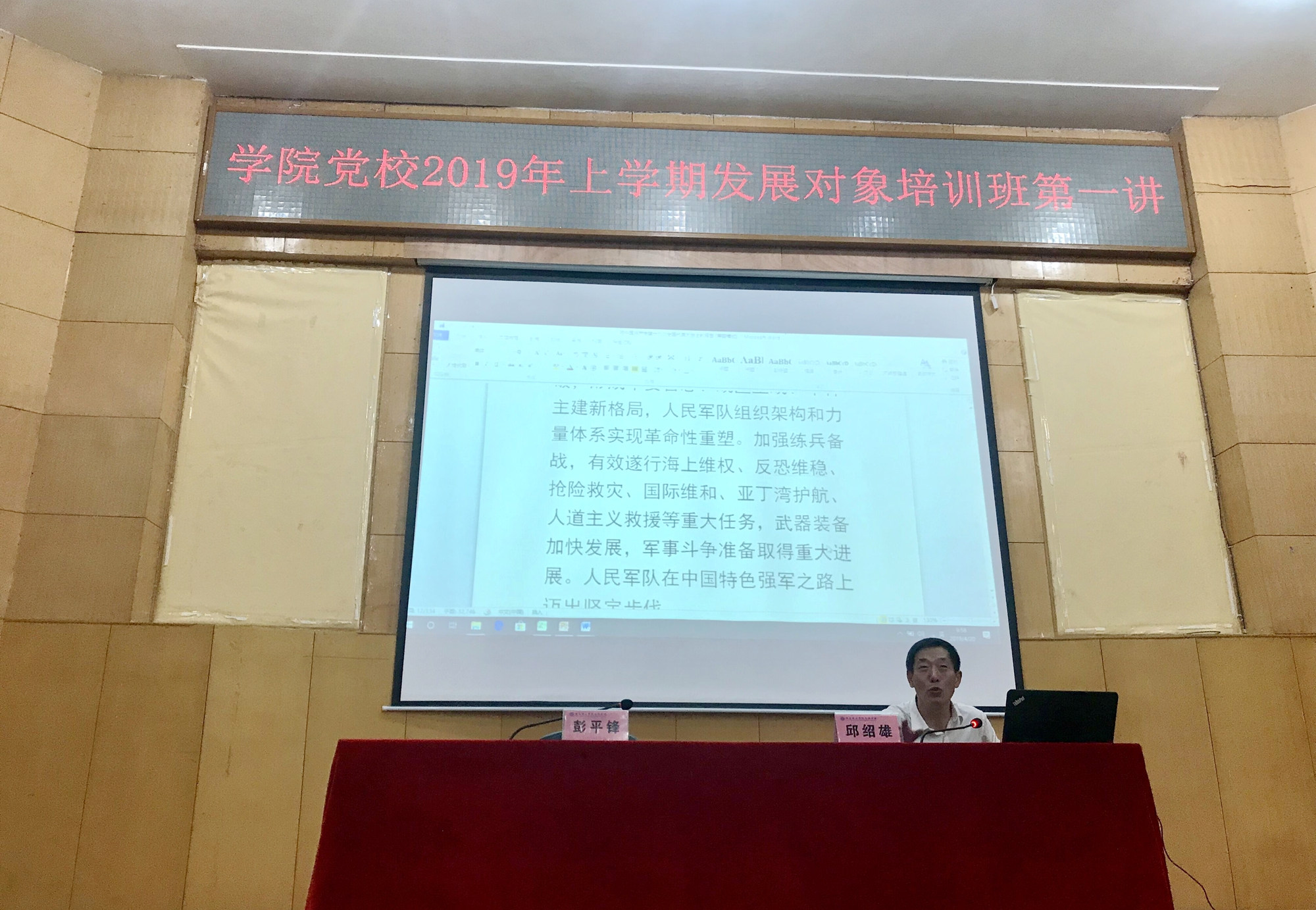 校园网讯 4月20日上午,学院党校2019年上学期发展对象培训班开班典礼在学校综合楼学术报告厅举行。校党委副书记邱绍雄为为学员授课,南湖学院相关负责、各院、系党总支书记、学生支部书记及126名发展对象参加本次会议。
