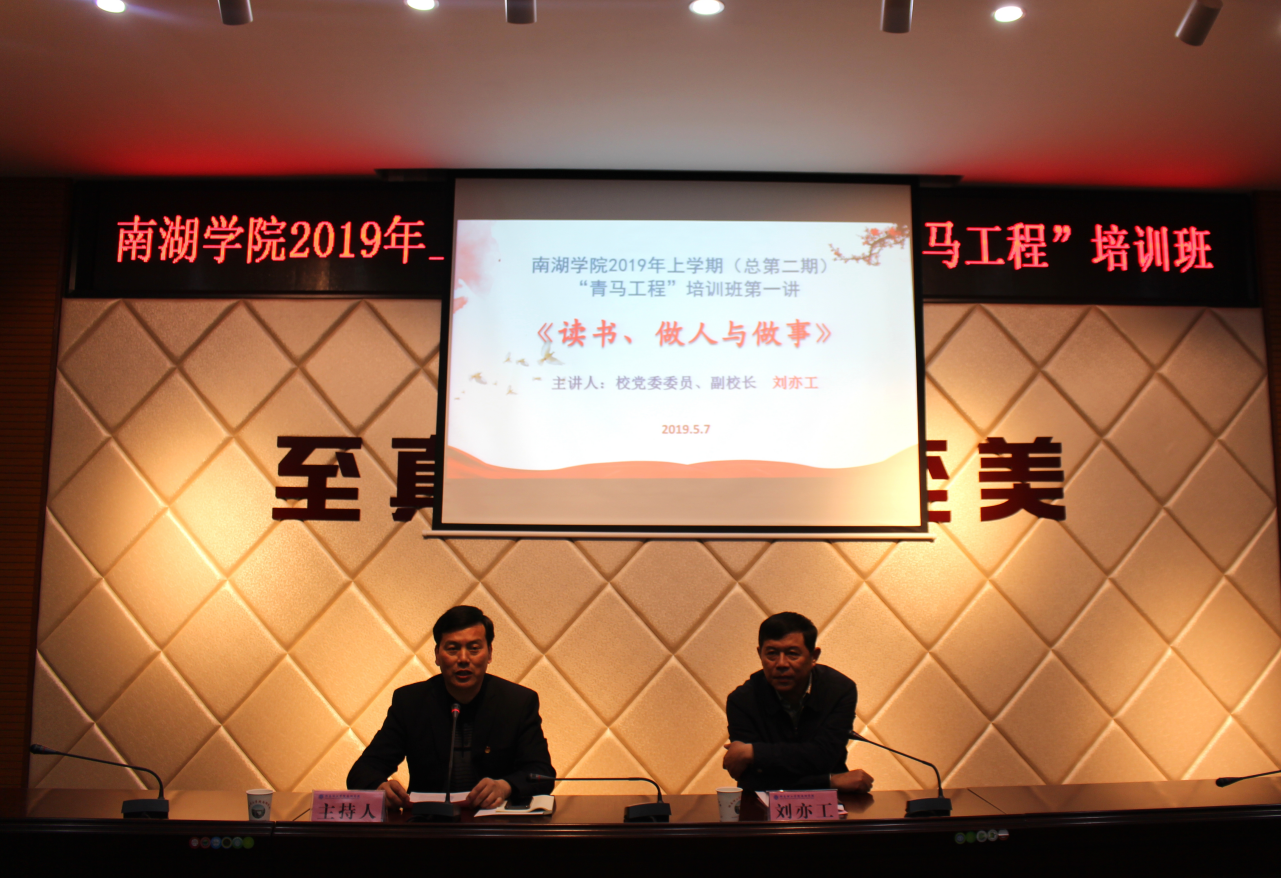 校园网讯 5月7日晚,党委委员、副校长刘亦工应邀为南湖学院2019年上学期“青马工程”培训班学员授课。南湖学院副院长李革新,学院团委书记夏玉宁、各系团总支书记以及80余名院系主要学生干部聆听了讲座。