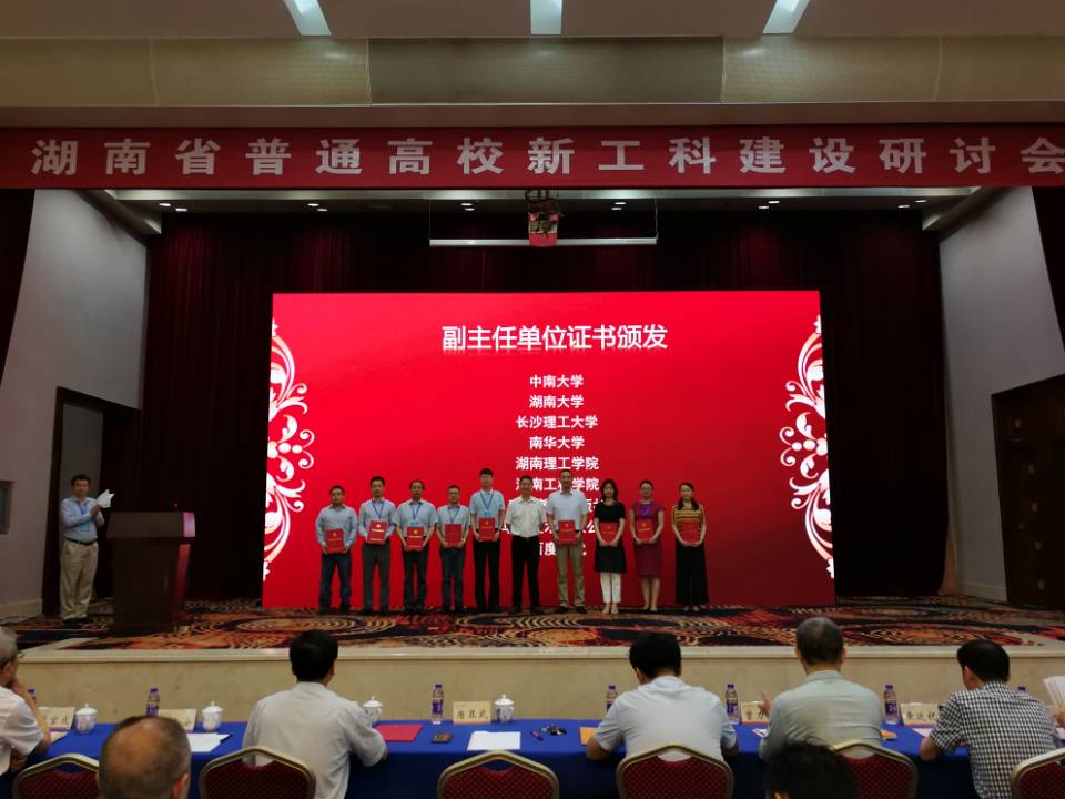 会议举行了“湖南省普通高校新工科建设协作组”成立仪式,湘潭大学当选为协作组主任单位,我校当选为协作组副主任单位。会议以“新工科、新发展、新行动”为主题,邀请多位教育界知名专家学者聚焦新工科建设与工程人才培养,解读新工科政策,分享专业建设与人才培养经验。来自全省30余所高校的领导、专家和华为、百度等企业代表约300余人参加会议,并进行产教融合协同育人项目对接。