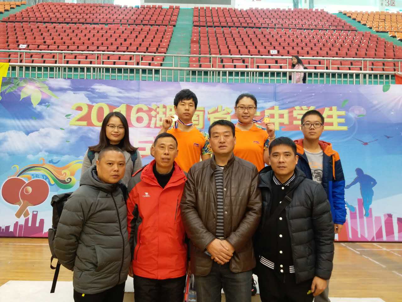 校园网讯 由湖南省教育厅组织主办的湖南省大、中学生乒乓球比赛于11月25至28日在湖南涉外经济学院举行。本次比赛共有20多所高校40支代表队参加。我校首次派队参加,由校公共体育艺术教学部主任马岳良任领队,体艺部曹利民、余胜、张伟民老师任教练及9名学生组成的校乒乓球队参加了此次比赛,分别战胜众多强手最终获得女子团体比赛季军,我校刘托与姚旭倩组合获得混双冠军。(公共体育艺术教学部)