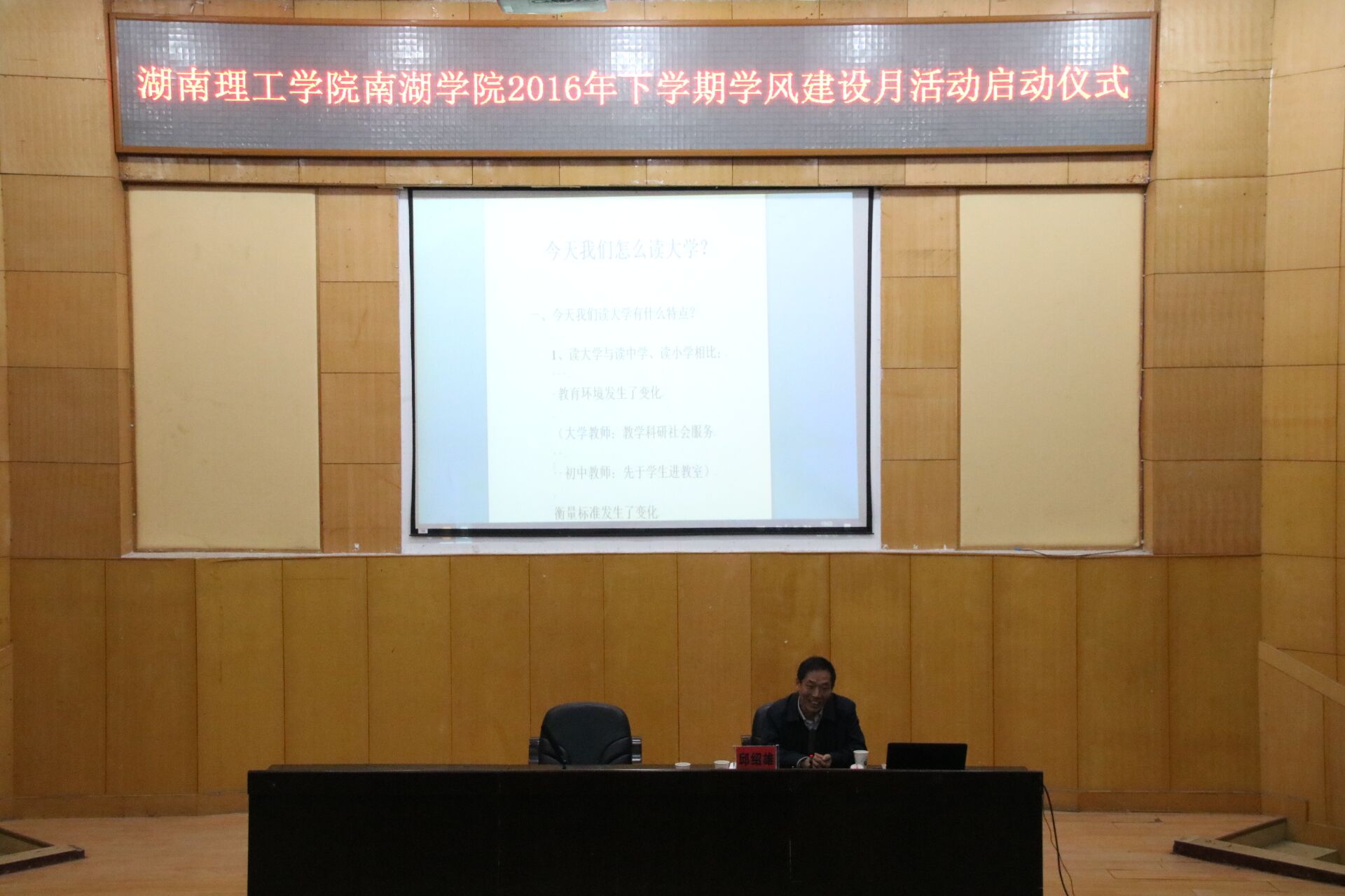 校园网讯 11月9日晚,南湖学院“不忘初心,学而不厌”学风建设月活动启动仪式在东院学术报告厅举行,校党委副书记邱绍雄为师生作学风建设专题讲座。南湖学院相关负责人、学工线全体教师及200余名学生参加活动。