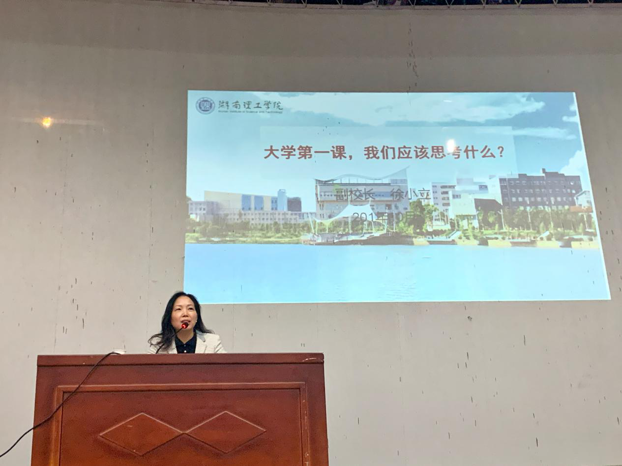 徐小立以“大学第一课,我们应该思考什么”为题,围绕思考对于大学和人生的意义进行讲解,强调了思考的重要性的同时,鼓励同学们学会思考。她分别从“我们的大学”“人才培养”“我的大学,我的人生”三方面进行了讲述。在介绍我们的大学时,她从校训、办学理念、校园面貌、办学历程、校友楷模和学校的宏伟蓝图等六方面进行了解读。她指出,改办大学之路需要老师和同学们的共同努力。在人才培养方面,徐小立谈到,习近平总书记在全国教育大会上强调,培养德智体美劳全面发展的社会主义建设者和接班人。徐小立希望当代大学生不能仅限于课堂所学,应争做复合型人才,并紧跟时代行业的发展趋势,提高专业能力与综合素质。