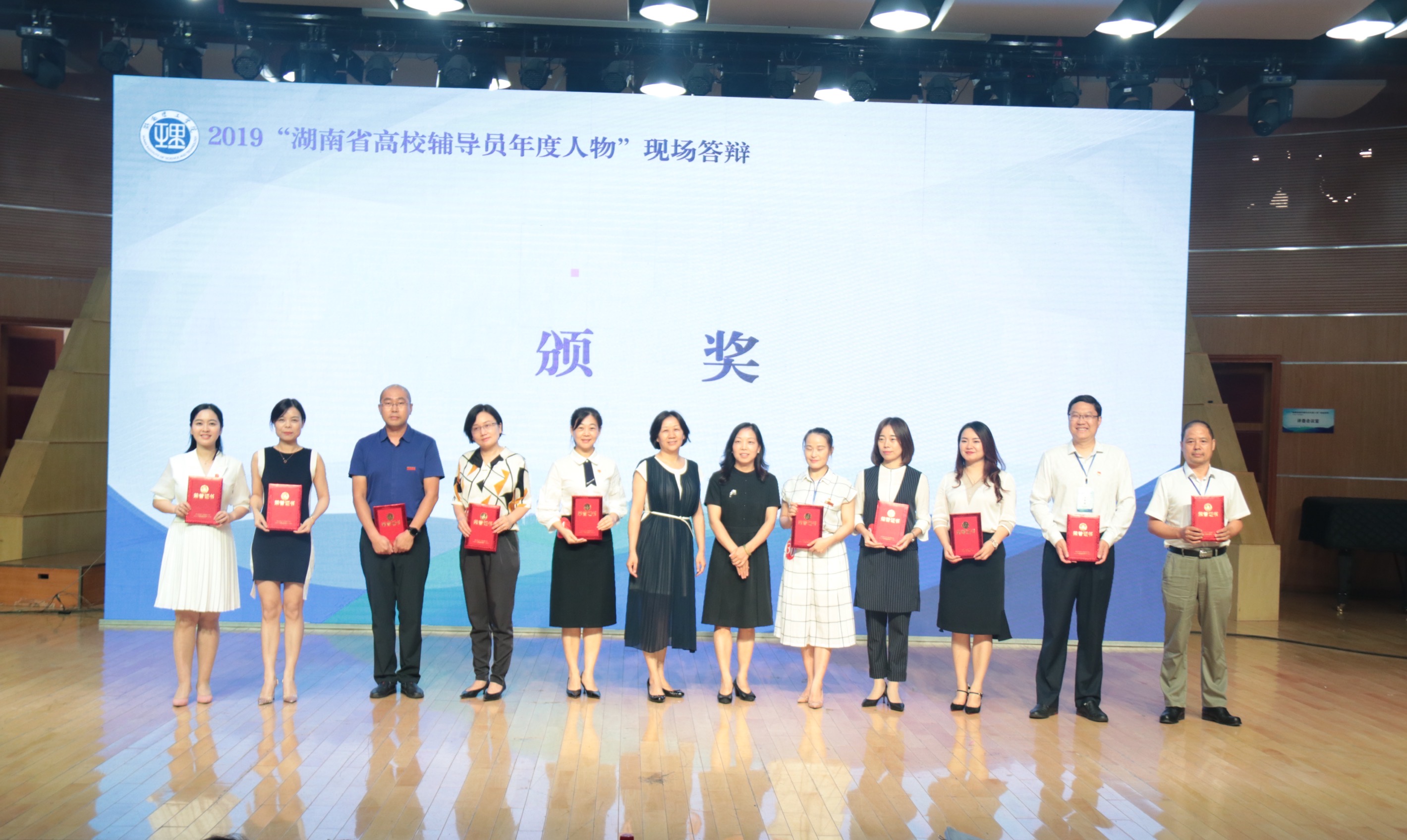 省委教育工委宣传部部长刘书华、湖南理工学院副校长徐小立为“2019湖南省高校辅导员年度人物”颁奖
