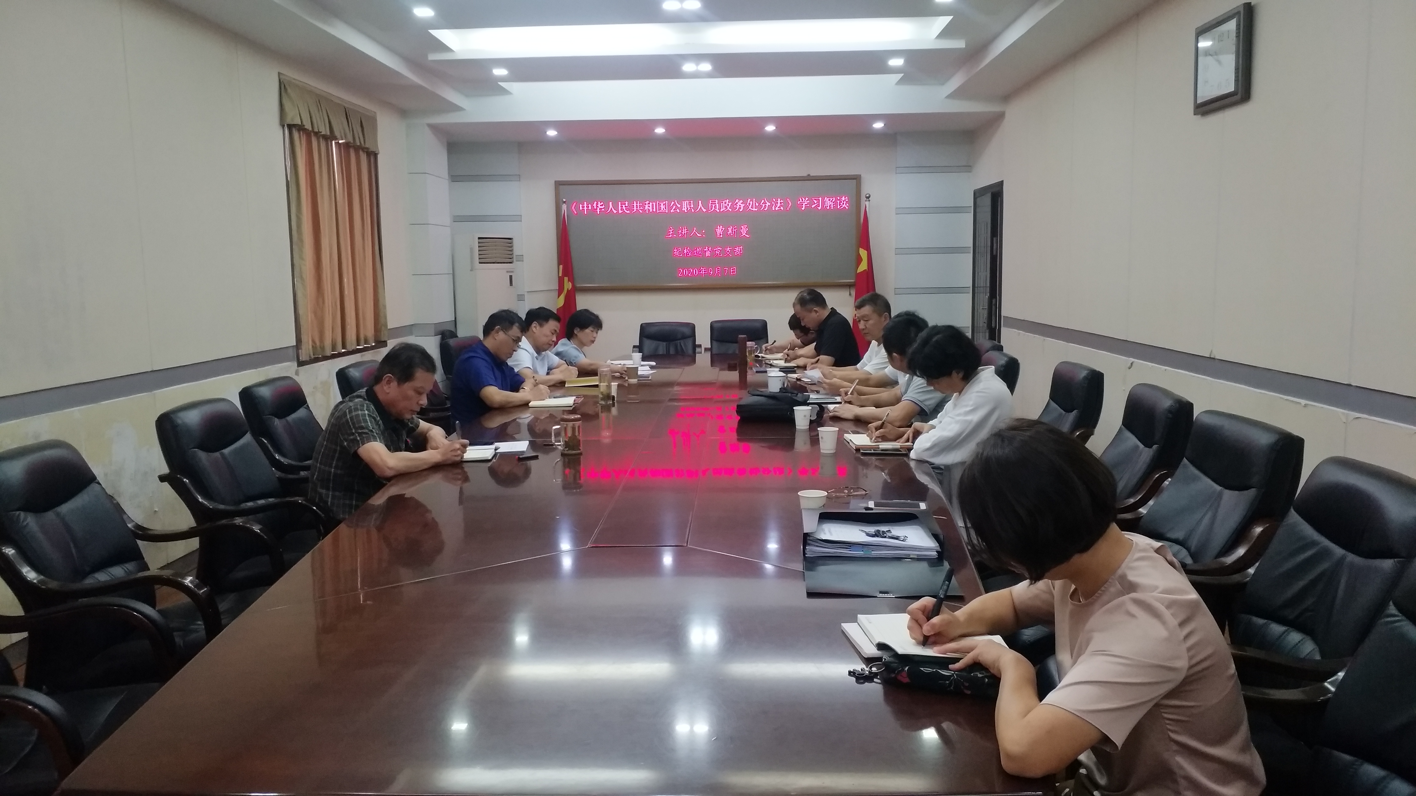 校园网讯 9月7日上午,纪检巡督党支部在414会议室组织开展本学期第一次理论学习,主要内容为《中华人民共和国公职人员政务处分法》,党委委员、纪委书记、省监委驻校监察专员谢贵辉和支部全体党员参加会议。