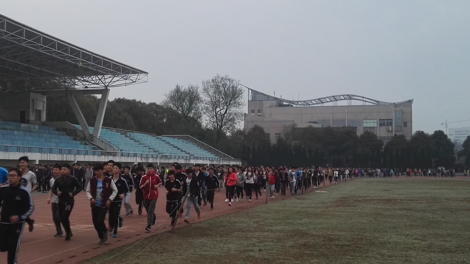 早训第一天,全体学院领导、辅导员和班主任到达田径场组织学生训练,学生参训率达99%。(撰稿/体育学院 刘立刚)