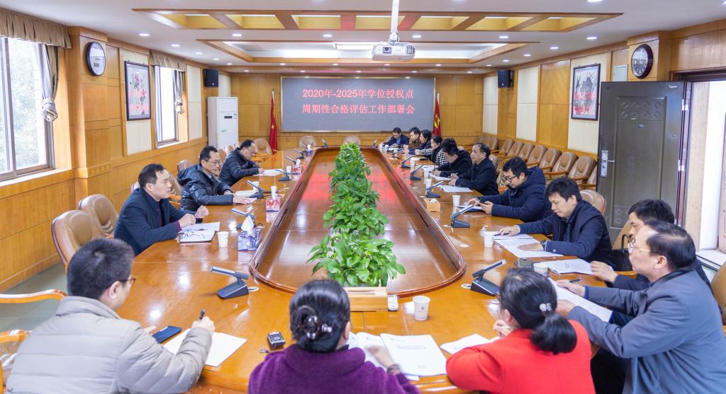校园网讯 3月9日下午,学校在办公楼319会议室召开2020-2025年学位授权点周期性合格评估工作部署会。会议由副校长丁跃浇主持,政法、中文、外语、音乐、美设、数学、物电、化工、信息、教科院等行政主要负责人以及研究生院相关人员参加了会议。