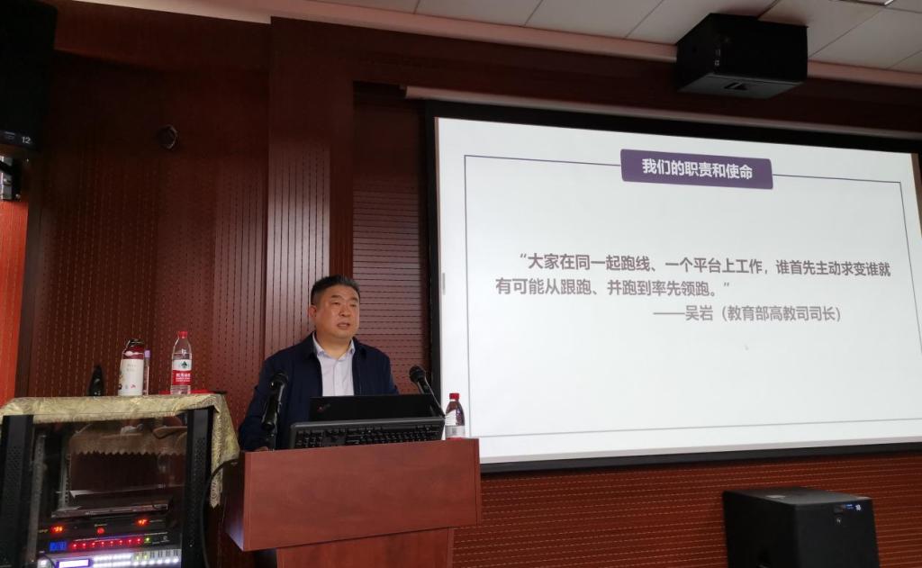 校园网讯 为进一步推进一流本科专业建设和专业认证工作,加强专业内涵建设,提高专业建设水平,教务处在2021年4月16日下午举办了专业建设专题讲座。讲座由湖南师范大学评建办主任银海强、我校教务处副处长彭鑫主讲。副校长徐小立、教务处处长瞿述主持。各学院院长、主管教学副院长、专业负责人、教研室主任、专业认证骨干教师代表和教务处全体人员听取讲座。