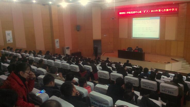 校园网讯 12月22日下午,湖南理工学院党委中心组(扩大)2015年第七次集中学习在图书馆学术报告厅举行。湘潭大学党委书记章兢应邀作了题为“大学治理体系与治理能力现代化”的主题报告。校党委书记李明主持学习活动,学校在家校领导,副处以上干部,教授博士代表等参加学习活动。