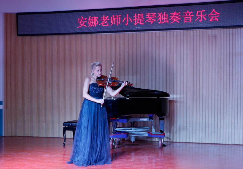 安娜老师演奏了德国作曲家巴赫第二无伴奏小提琴哈迪塔(古组曲)“恰空”(Chaconne)第五乐章、比利时作曲家伊萨伊的作品“六首无伴奏小提琴奏鸣曲”(Op.27)和法国小提琴家雅各著名的“缠绕”(Obsession)、“忧郁”(Malinconia)、“死之舞”(Danse Des Ombres)和“复仇女神”(Les Furies)。意境深邃的曲目和精湛的演技赢得观众的阵阵掌声。(国际交流处/陈钰)
