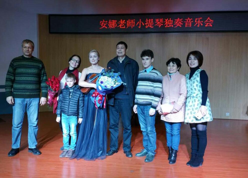 校园网讯 12月11日晚,俄罗斯籍小提琴教师安娜加宁在北院1T2举办了本学年度第二次汇报演出。校领导余三定、卢先明和相关部门负责人到现场观看。