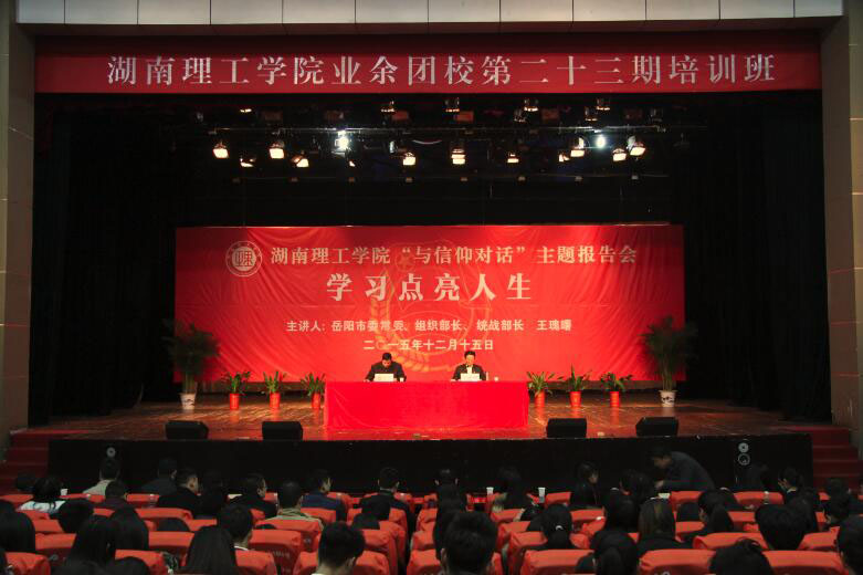 校园网讯12月15日晚,第23期团校培训第二讲在东院演播厅开讲。岳阳市委常委、组织部长、统战部长王瑰曙受邀,为学员作了《学习点亮人生--与信仰对话》主题报告。校长余三定主持报告会。校纪委书记刘亦工,岳阳市委组织部、共青团岳阳市委员会相关负责人,校团委负责人及各学院团总支书记出席本次培训。