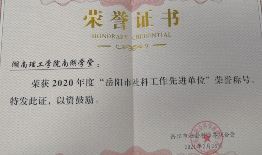 “南湖学堂”荣获2020年岳阳市社科工作先进单位