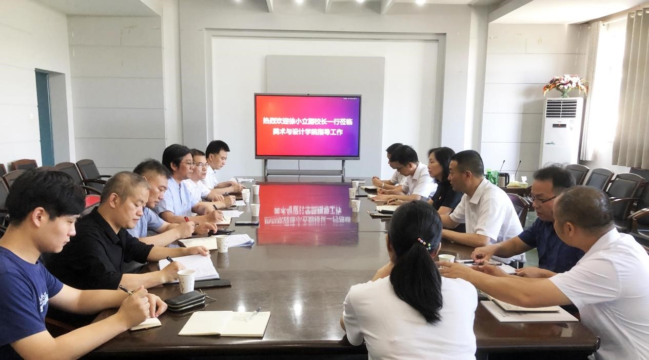 校园网讯 8月30日下午,校党委委员、副校长徐小立深入美术与设计学院开展工作调研。前来调研的还有教务处处长瞿述、副处长彭鑫、周勇、狄岱岳、评估中心主任孙风华,美术与设计学院院长万长林、党总支书记蒋晓城、副院长黄亚鹰、王平、刘文良及相关教师参加了会议。