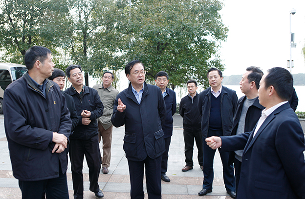 调研组一行在岳阳市市长刘和生,副市长李为,我校领导余三定、易健民、邱绍雄、张松德、钟华等陪同下,参观了我校校园。