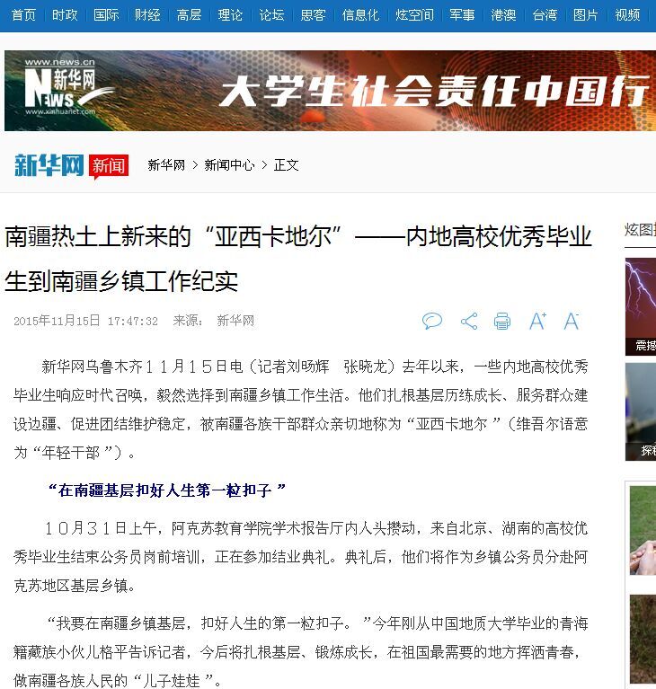 我校赴新疆基层工作毕业生受到媒体广泛关注