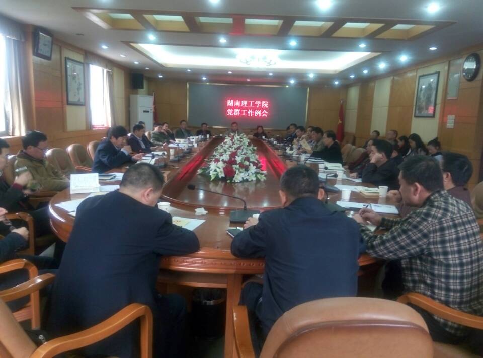 校园网讯 11月3日下午,我校2015年党群工作例会在办公楼319会议室召开,校党委书记李明,副校长易健民,各学院(部)党总支书记、机关各党支书记、南湖学院党委书记及各部门相关负责人出席会议。