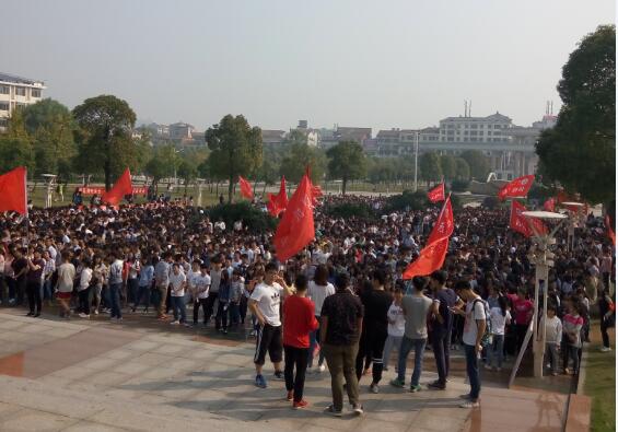 原来这是学校保卫处组织的2015级新生消防演练。此次消防演练由岳阳市武警消防支队和岳阳楼区特勤中队的官兵协助完成,包括两部分,一是逃生演习,二是对新生进行消防知识讲解和演练。