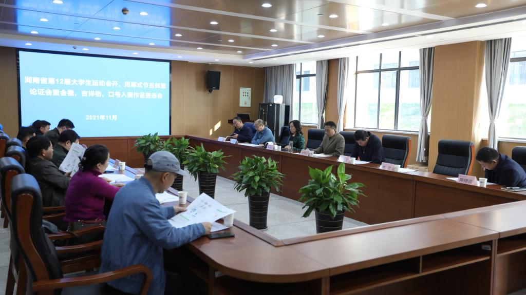 11月18日下午,我校在实训楼105会议室召开湖南省第十二届大学生运动会开闭幕式节目创意论证会暨会徽、吉祥物、口号入围作品遴选会