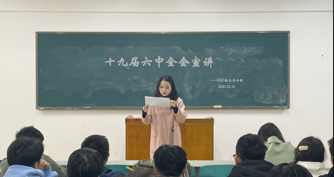 12月14日下午,土建学院举行班级导师见面会暨党的十九届六中全会精神宣讲,各班班级导师携手土建学院学生党支部参与此次宣讲,班级导师、学生党员带领班级共同学习党的十九届六中全会的精神内涵,引导学生在学习生活中贯彻党的十九届六中全会精神。