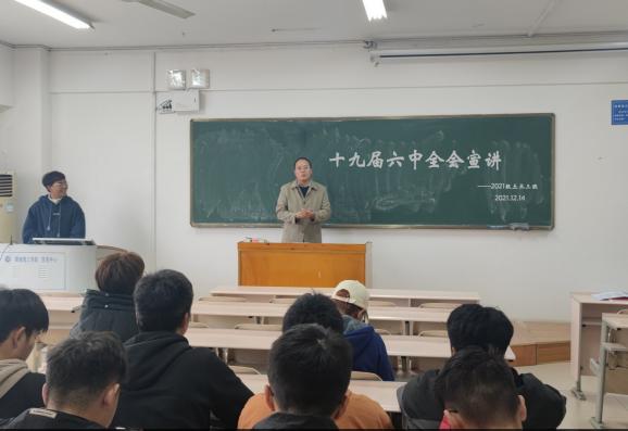 班级导师与学生党员紧扣《中共中央关于党的百年奋斗重大成就和历史经验的决议》,向学生分享自身学习党的十九届六中全会精神的心得体会。各班级导师表示,当代青年学子应当夯实专业基础,树立明确目标,为未来建设祖国打好河山积蓄力量;强健自身体魄,保持身心健康,在实践活动中提高个人眼界和处事能力;心怀家国天下,牢记初心使命,以实际行动践行党的十九届六中全会精神。