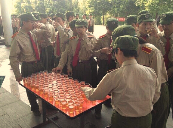 除此之外,大学生英语协会的学生干部们还趁派奶茶的空余时间在军训场上小秀了一段英文歌,军训的新生们则以新学的军歌对唱。“这个活动让同学们身心得到短暂的放松,休息过后,他们的精神更饱满了,训练也更有劲头了。”不仅同学们,一直在场边陪同训练的助班和教官们也在品尝了奶茶之后直呼“好!”