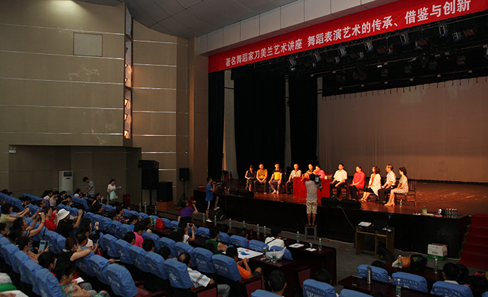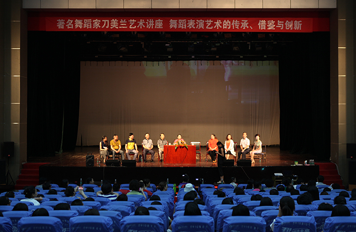 刀美兰向大家讲述了她的艺术生涯。在童年,与大自然亲近熏陶了她的艺术修养,善良淳朴的傣族文化是她的舞蹈的美和灵魂。在面对艺术多元文化的冲击下,她对中国传统文化的处境十分忧虑,担心年轻人遗忘了根在什么地方,民族的魂在什么地方。她语重心长地说道:“我们要守住自己的本土文化,切不可盲目学习国外流行舞蹈,以致丢了自己的民族传统。现在的青年学子要树立良好道德品行,勤学苦练,方可德艺双馨。”
