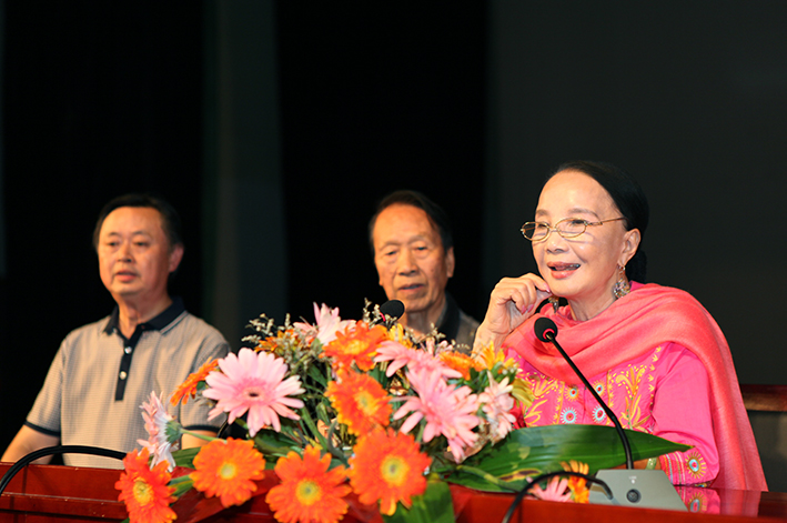 校长余三定在讲座开始之前致欢迎词,代表全校师生热烈欢迎著名舞蹈家刀美兰女士来校讲学。余三定表示,作为“人们喜爱的艺术家”,刀美兰女士不仅是舞蹈“名家”,更是艺术“大家”。