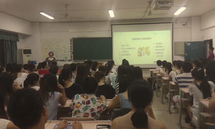 大家首先观看了中国南方航空公司的宣传片,初步了解了南方航空公司的基本情况及企业文化。南方航空公司湖南分公司人力资源部招聘主管祝茜表示,“在工作中旅行,在旅行中工作”是航空职业的特色。她就同学们关心的薪酬福利、职业发展舞台、劳务关系以及技能培训等方面作了详细讲解,并欢迎广大同学积极应聘。南方航空公司乘务员代表郭亚洁对招聘程序从初试、复试、试装、体检、笔试到最终的培训都进行具体介绍。