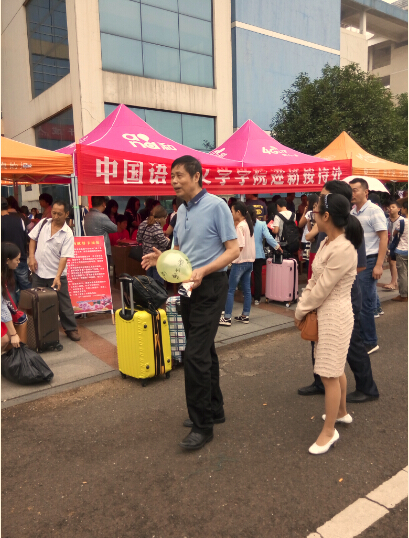 “咦!那是谁啊?好高啊”流动的人群发出问号。“那是校长呢!他肯定是来看看你们,检查一下迎新情况的!”手里拿着一个黄色气球的余校长在几位老师的陪同下行走在各学院迎新接待处,迎接他们的是欢喜和好奇的目光,有学生说:“一开学就看到校长,算是一个惊喜了!”