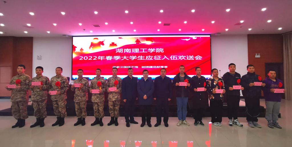 校园网讯 3月17日上午,湖南理工学院在役前训练基地举行2022年春季应征入伍学生欢送会。校党委委员、副校长徐振祥、党委武装部负责人出席并亲切慰问12名春季入伍学生。