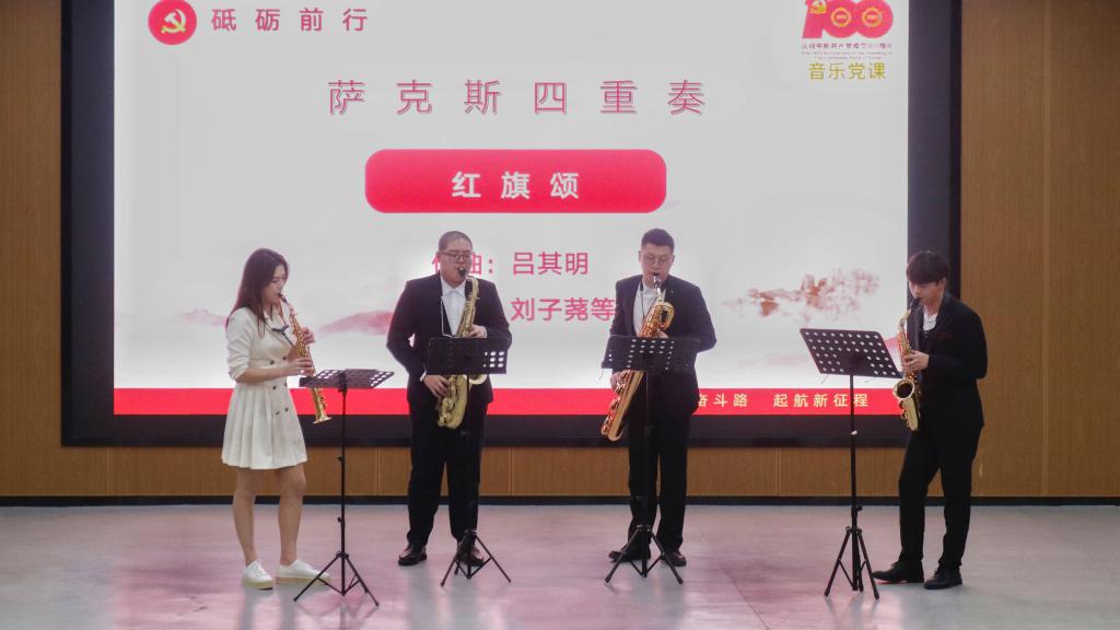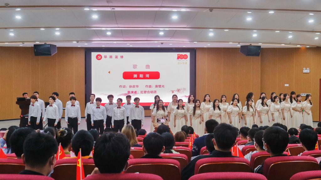 这场由音乐学院和物电学院联合发起的音乐党课,是学校党课教学的又一次形式创新。为了让青年大学生在党史学习教育中坐得住、学得深、记在心,我校自党史学习教育开展以来,以打造沉浸式党史课堂为目标,开发了一系列深入人心、鲜活丰富的艺术党课:邀请专家讲授毛泽东诗词里的党史;开展“传承物理学家精神”学党史专题课;举行“共铸党徽”探秘党徽设计背后的党史课堂……这些内涵丰富、形式多变的党课让师生沉浸其中,爱国爱党爱社会主义之情在潜移默化中滋长,激励着师生们在新时代的奋斗征程中同心同德,用更大的热情和干劲创造优异的成绩献礼党的二十大!