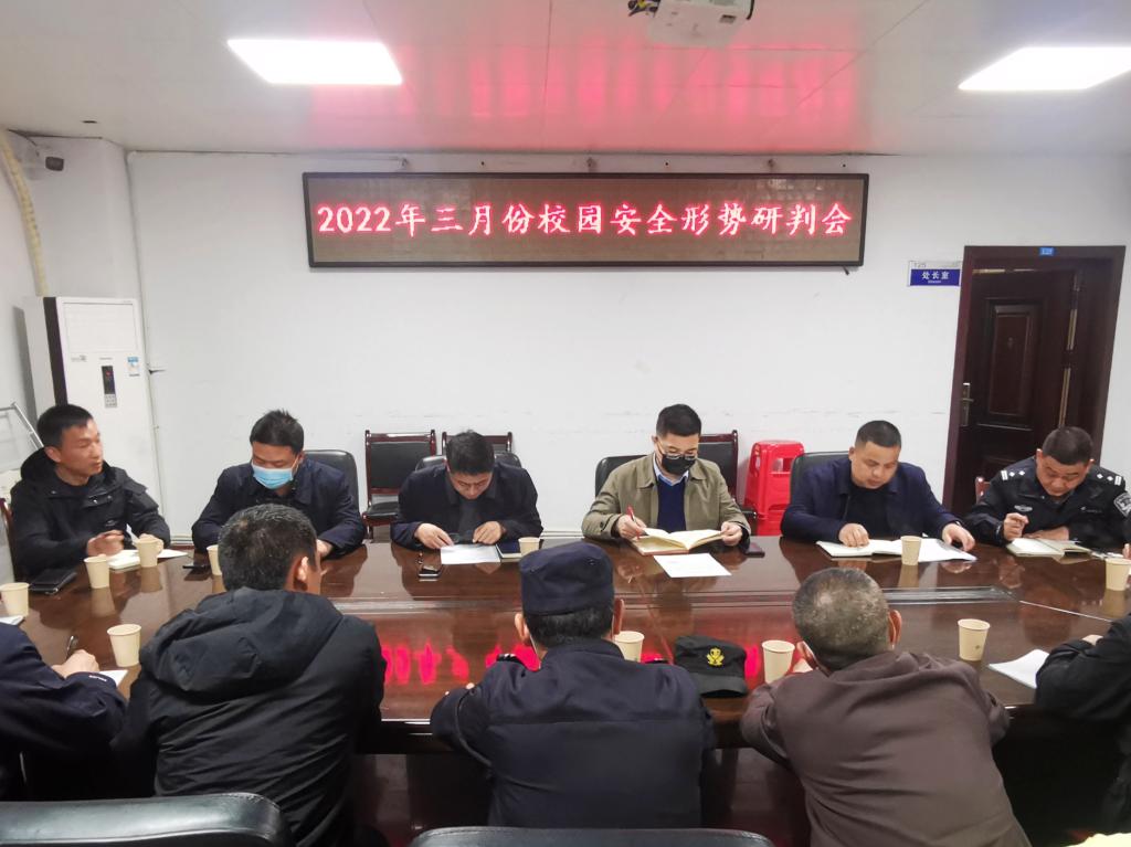 校园网讯 3月30日下午,我校在综合楼124会议室主持召开3月份校园安全工作研判会,党委委员、副校长徐振祥、学工部、保卫部各科室负责人、驻校民警和建囯保安全体骨干参加会议,会议由保卫部副部长谭良机主持。