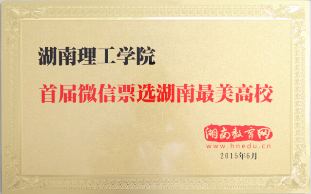 校园网讯 7月6日,在湖南教育微信联盟(Hunan Education Wechat Union,简称HEWU)成立大会上,湖南教育网(湖南省教育厅、省委教育工委主办的官方教育门户网)向在首届微信票选“谁是湖南最美高校”活动中脱颖而出的10所本科院校和10所高职、高专院校颁发奖牌,我校在该项票选活动中获评为“湖南最美高校”,为我校校园文化建设再添闪亮名片。