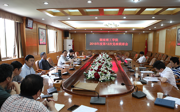 校园网讯 5月21日上午,学校召开2015年度第12次党政联席会议。党委书记彭时代、校长余三定主持会议。全体在家校领导出席会议。办公室、组织部、宣传部、人事处负责人列席会议。