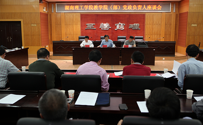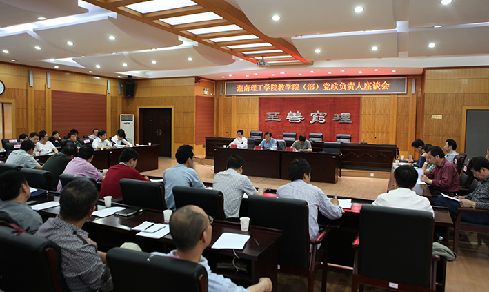 校园网讯 5月14日下午,在办公楼2014会议室召开学校教学院(部)党政负责人座谈会,征求院(部)党政联席会议制度修改意见,并结合教育实践活动整改落实情况“回头看”和领导班子“三严三实”中存在的问题对学校工作提出意见和建议。党委书记彭时代,正校级督导员文艺文,纪委书记刘亦工,组织部、办公室、宣传部负责人,各教学院(部)、南湖学院党政负责人与会,会议由文艺文主持。