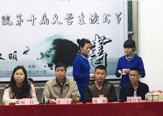 校园网讯 4月21日下午,我校第十届大学生读书节启动仪式暨学雷锋捐书活动在南院6栋学术报告厅举行。校长余三定、岳阳市监狱第二监区负责人周刚、宣传部、学工部、团委、图书馆等职能部门负责人以及各学院团总支书记参加此次活动。