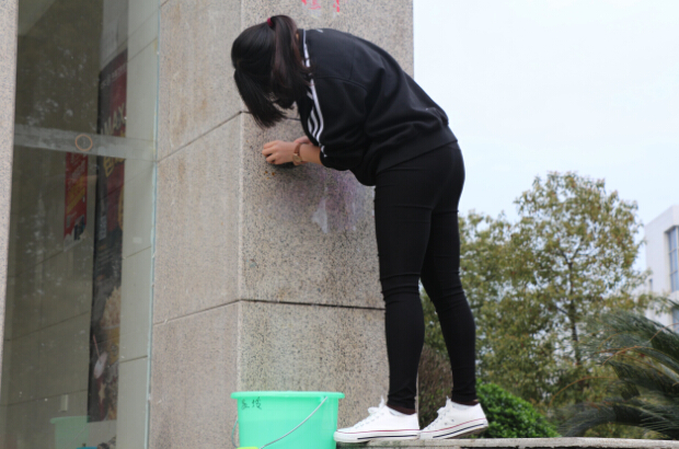 本次义务劳动任务重点在清理南院教学、生活区随意张贴的小广告。参与义务劳动的同学共分为三个组,分别对南院教学区、学生宿舍区和学生食堂区的“牛皮癣”进行大扫除。同学们用铲子、裁纸刀、剪刀、钢丝球,尽力清理各处张贴的租房信息、招聘信息、寻物启事等,校园里随处可见体育学院学生党员和入党积极分子义务劳动的身影。同时,体育学院还组织师生对东院的路灯杆、球类训练馆室外的“牛皮癣”以及体育学院办公楼周边的环境卫生进行了清理。 (体育学院/喻俊 宁夏风)