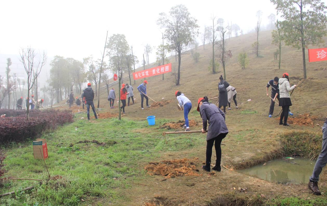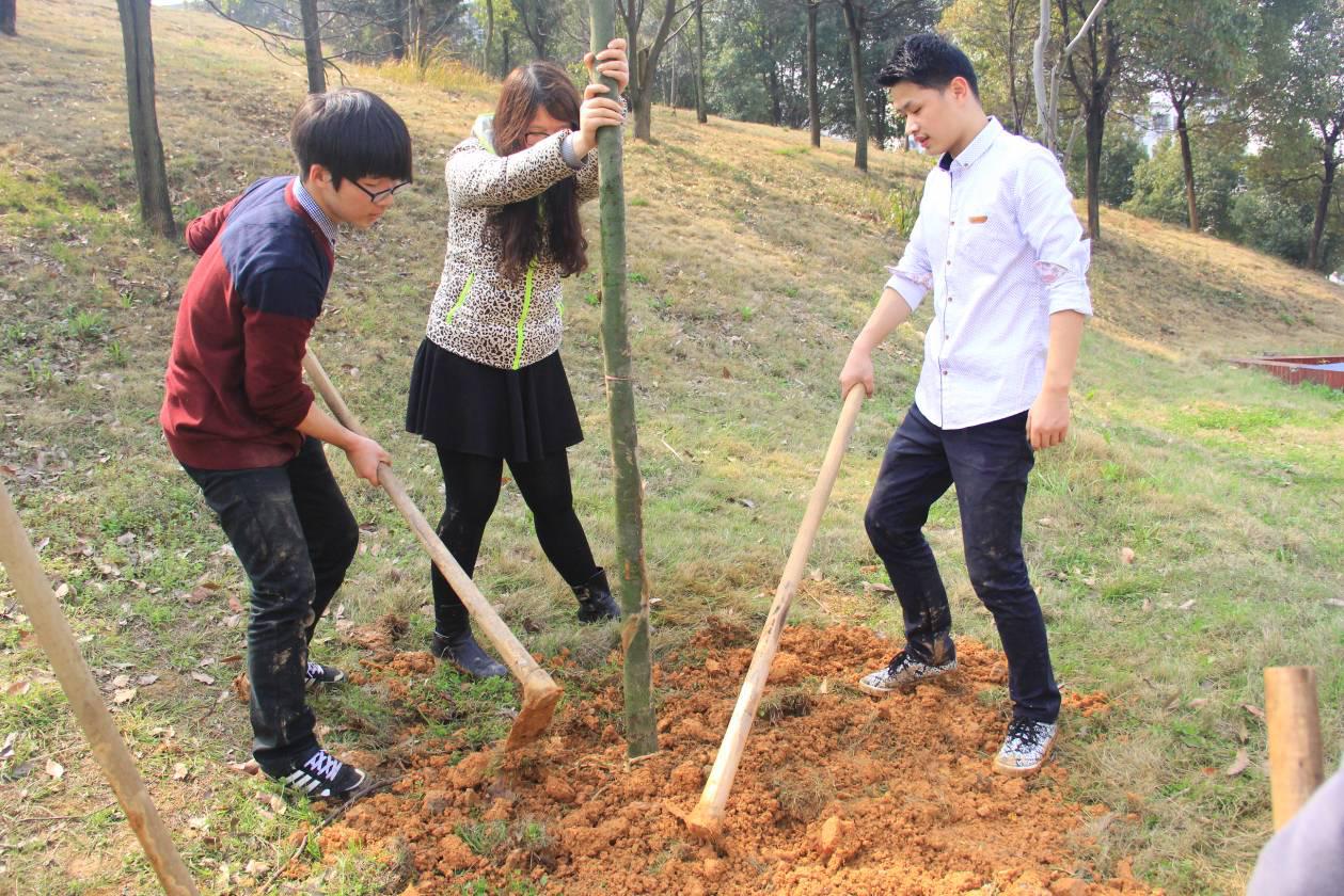 校园网讯 3月21日上午,我校后勤处组织大学生环境保护协会以及南湖学院环境保护协会的志愿者在南院尚德山开展植树绿化活动,共种植香樟树、杜英树近40棵。