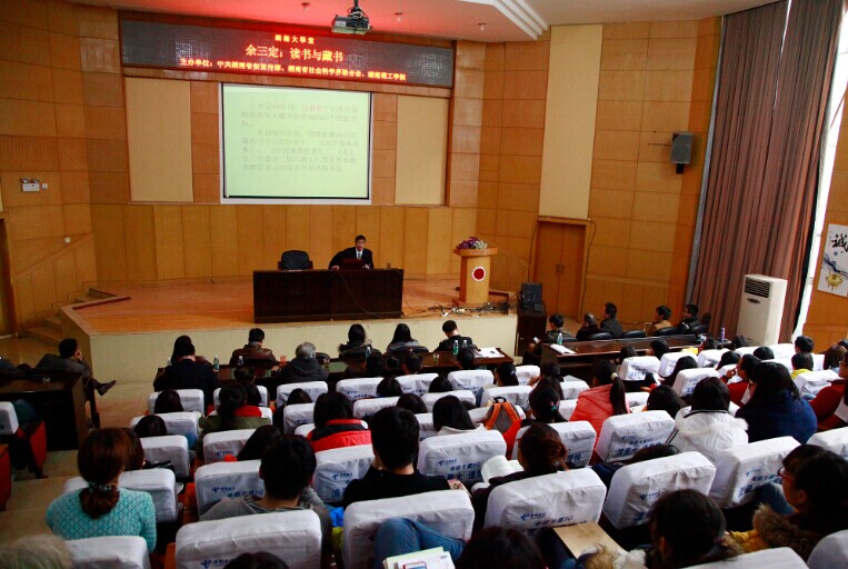 校园网讯 近日,湖湘大学堂系列讲座之一“读书与藏书”主题讲座在我校图书馆学术报告厅开讲。我校校长、湖南省文艺评论家协会主席、《云梦学刊》主编余三定教授担任主讲嘉宾,岳阳市社会各界人士以及学校师生共300多位听众聆听了讲座。本次湖湘大学堂讲座由中共湖南省委宣传部、湖南省社会科学界联合会及我校联合主办。我校承办。