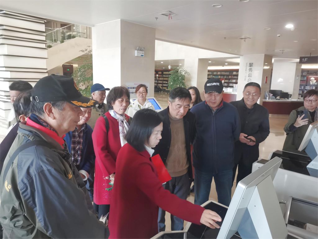 图书馆负责人带领老专家参观图书馆