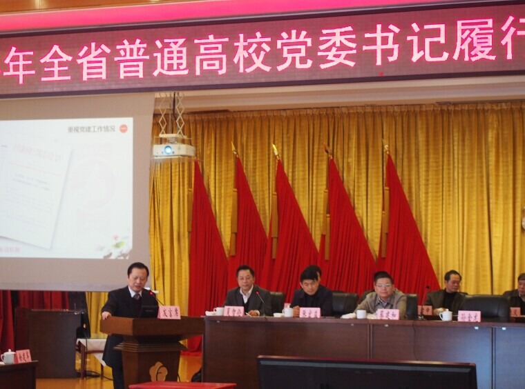 校园网讯 1月13日至14日,全省高校党委书记履行党建工作责任述职评议大会在长沙举行,省委副书记孙金龙,省教育厅厅长王柯敏出席会议。本次述职评议大会是我省首次组织高校党委书记就履行党建工作责任情况进行专题述职。全省29所公办本科高校和5所教育厅直属高职院校的党委书记围绕党建工作主题进行述职。我校党委书记彭时代参加测评大会,现场述职并接受了现场提问,经过会议现场打分评议,获全省高校党委书记履行党建工作责任现场测评第一名,并以96.15的高分获综合测评第二名。