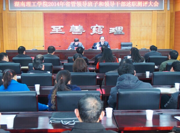 校园网讯 1月16日下午,我校2014年省管领导班子和领导干部述职测评大会在办公楼214会议室举行。省委组织部干部四处副调研员彭建,省委教育工委组织部干部李陟威到会指导工作,全体校领导参加会议并接受测评,大会由党委书记彭时代主持。