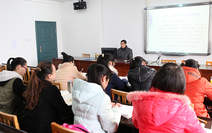 校园网讯 本周,湖南师范大学2013级文艺学硕士研究生来到我校,听取导师余三定教授为他们讲授为期一周的“当代学术史研究”课程。图为12月16日授课现场。(宣传部)
