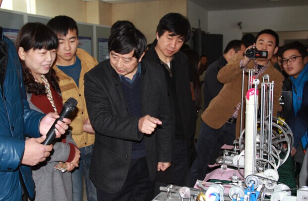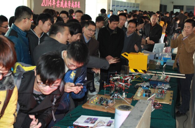 校领导在十五个教学院相关负责人和学生的解说下认真观看了展板、实物、竞赛获奖作品、自制教学仪器设备(教具),同时仔细询问了相关实践教学组织、竞赛参与、实践教学改革和实验室建设情况,充分肯定此次展示作品的科技含量、创新性方面都有明显进步,成果水平有明显提升。在讲评会上校领导提出,学校将继续加大实践教学的投入,各教学院要深化理论与实践教学改革,多种形式聘请行业专业人士进校指导学生的实践教学工作,争取企业的行业背景能够成为学校的行业背景,培养以扎实的实践动手能力为核心能力的应用型人才,同时,培育和积累实践教学创新成果,与企业合作推向市场,逐步提升学生创新作品产品化的比率。