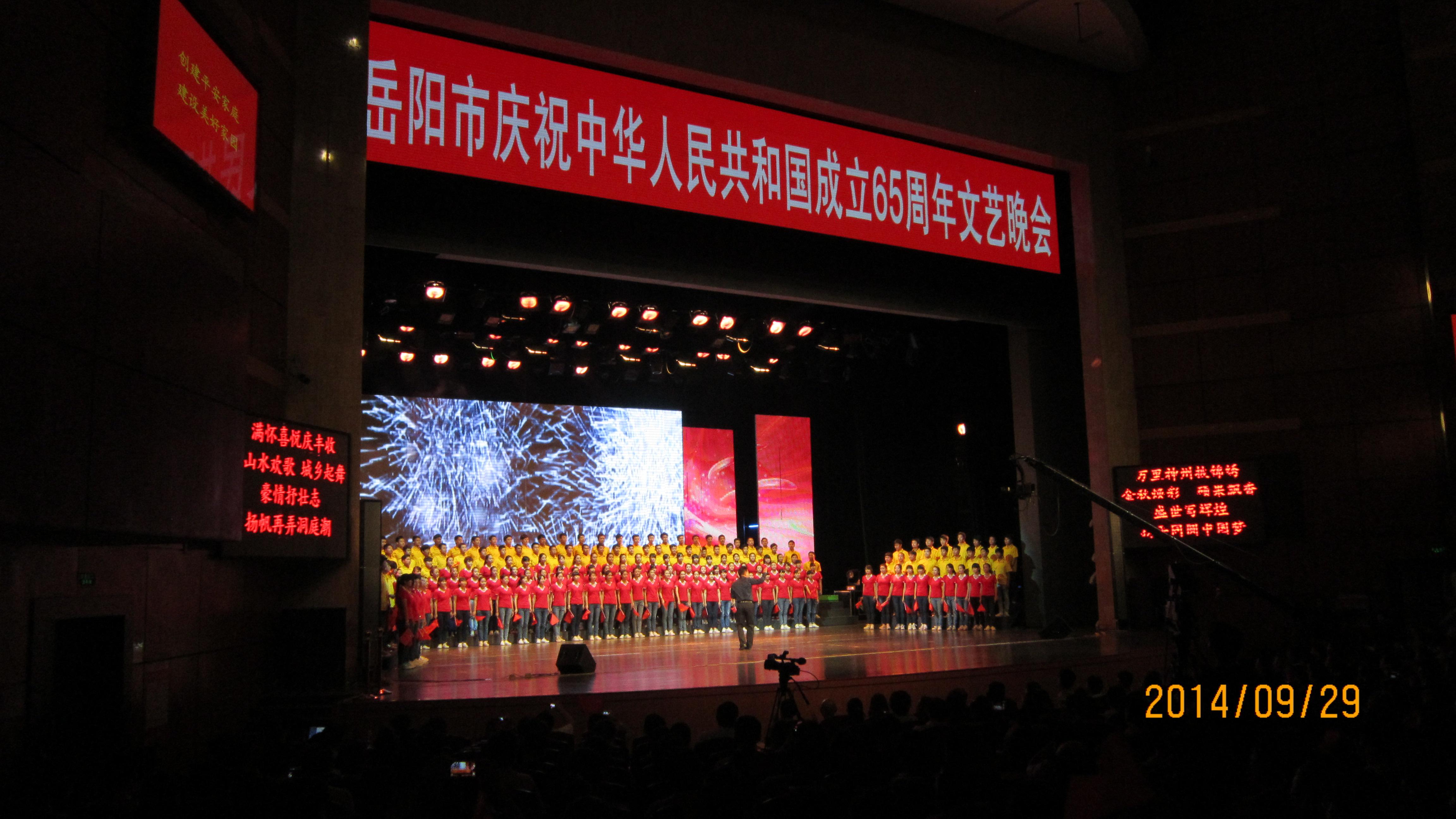 校园网讯 9月29日晚,由中共岳阳市委、市政府主办,中共岳阳市委宣传部等多家单位联合承办的“岳阳市庆祝中华人民共和国成立65周年文艺晚会”在岳阳市会展中心举行。